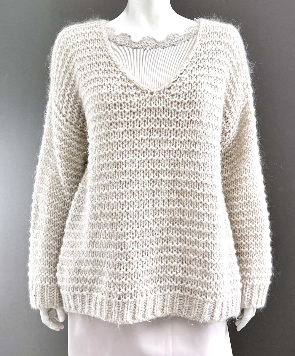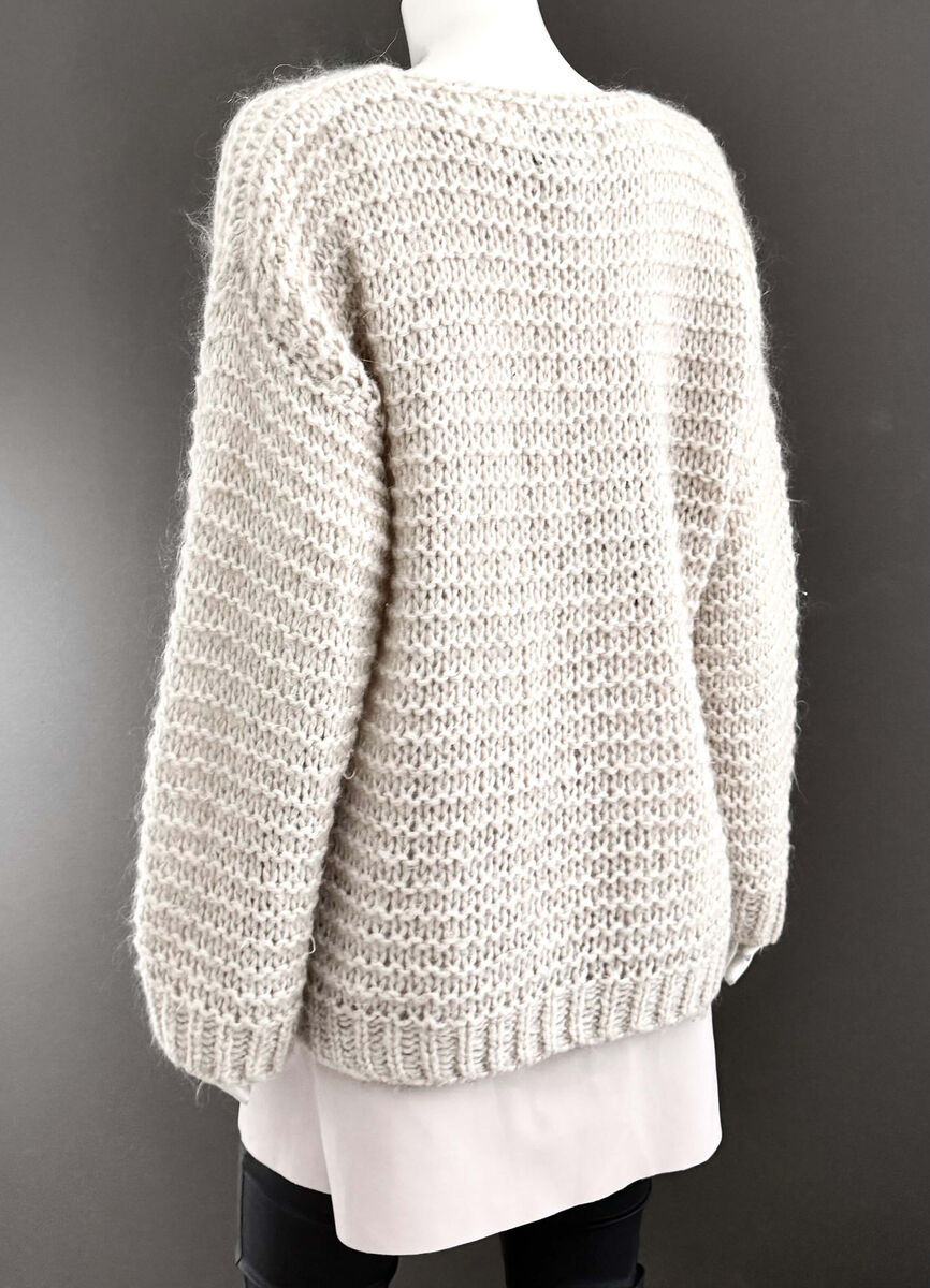 Bohemiana neulepusero 40-42. Materiaali mohair/nailon/akryli 50/30/20%. Puuterinen, vaalea hiekansävy. Ilmava reikäneulos. Upea neule ympäri vuoden käyttöön.